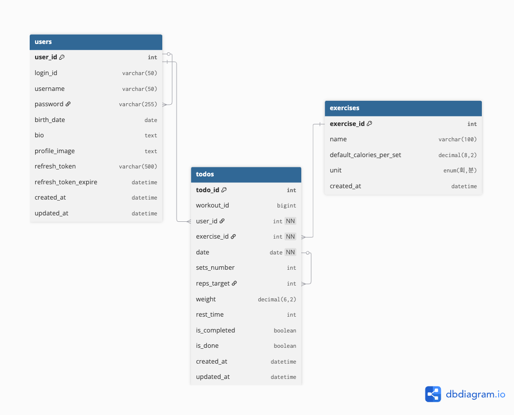 - 캘린더 월간 운동 요약 (`GET` /todos/summary)