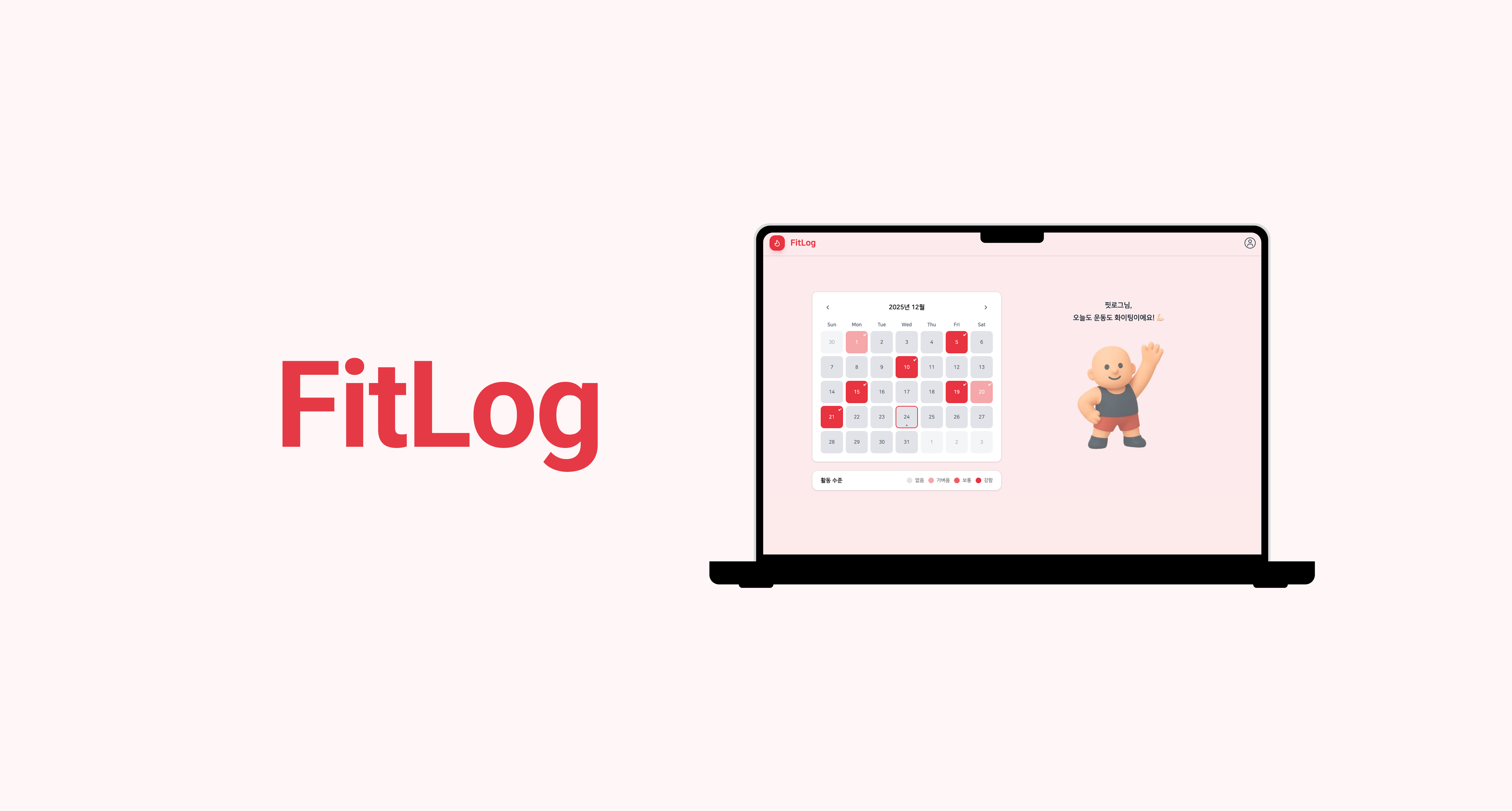 하루의 운동량을 기록하고 시각적으로 성취감을 느끼며 꾸준한 동기부여를 통해 건강한 삶을 실천하는 운동 관리 웹앱 프로젝트이다.