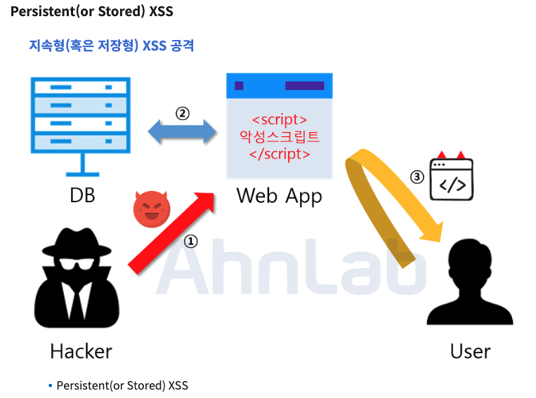 - 악성 스크립트가 서버(DB)에 저장