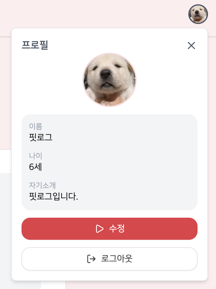 이름, 생년월일, 자기소개, 프로필 이미지를 수정할 수 있는 기능을 개발하였다.