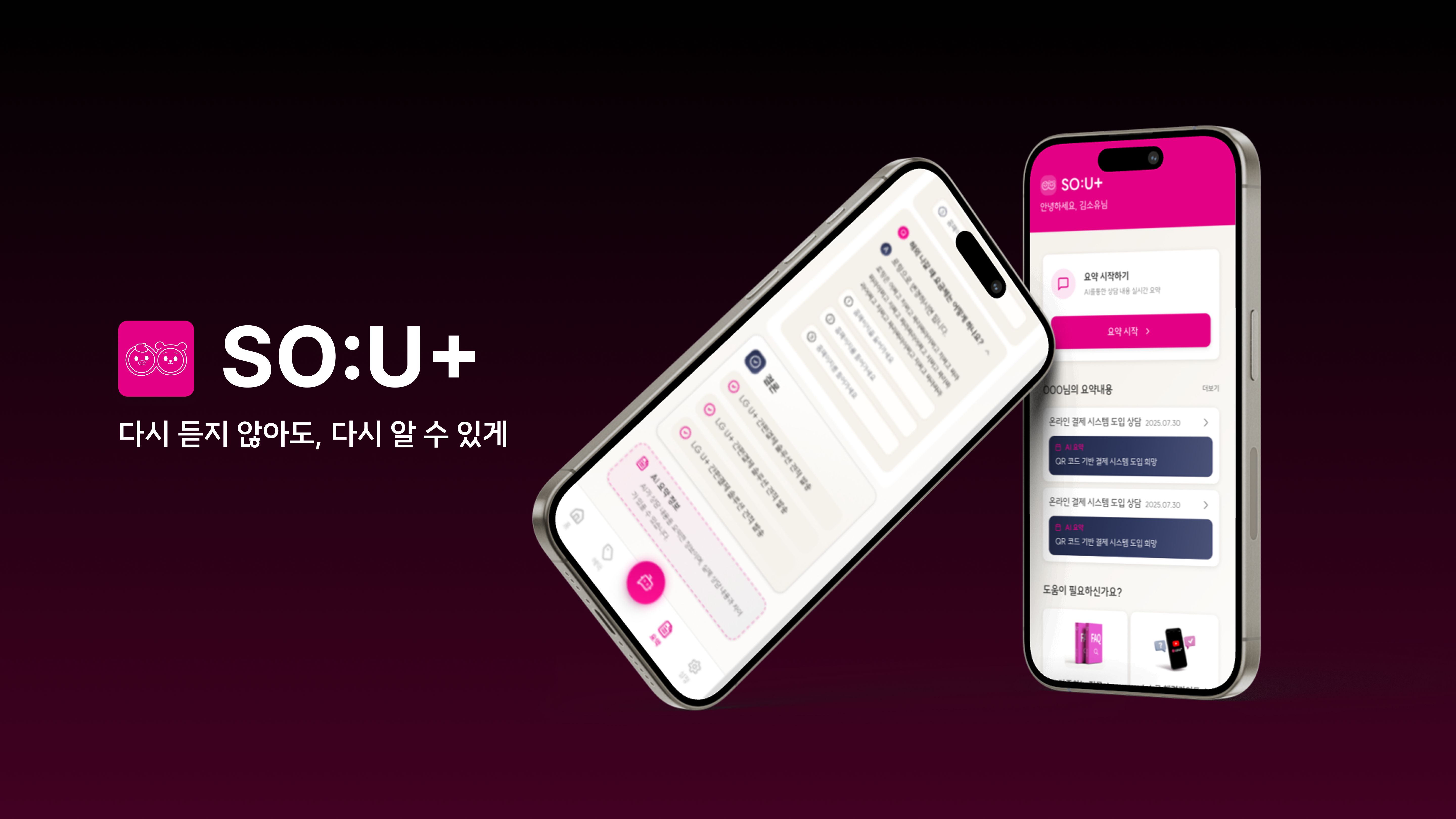LG U+ 고객의 상담 내역을 요약하고, 용어 팝오버와 요약 기반 추가 질의 기능을 제공하여 상담 내용을 직관적으로 이해할 수 있도록 하는 상담 AI 요약 서비스