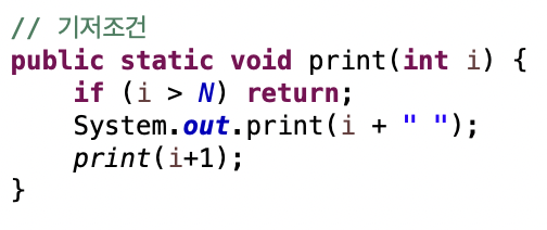 1) 기저 조건 (반복을 중단하기 위한 조건)